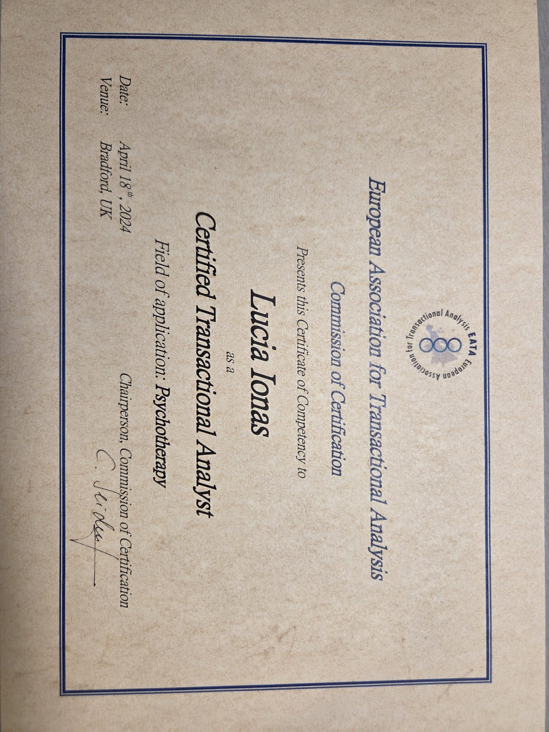 Lucia Ionas - Analist Tranzacțional Certificat (Psihoterapie)